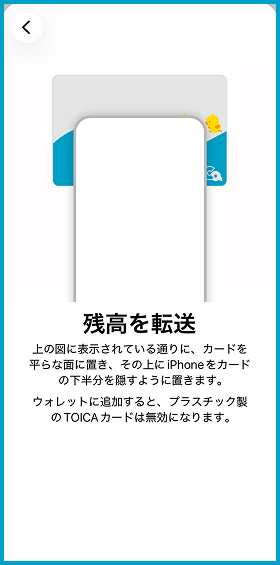 カードを取り込むと、 TOICAカードの残高がモバイルにチャージされます。残高はJR東海ではなくJR西日本の預り金となります。