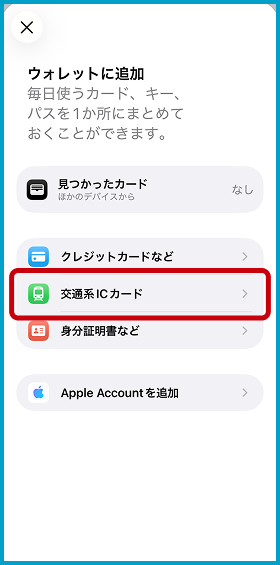 「交通系ICカード」を選択