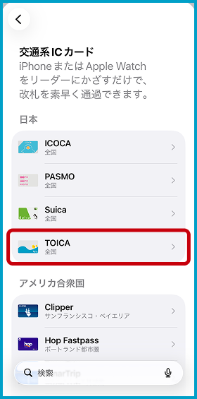 「TOICA」を選択