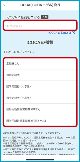 ICOCAの種類を選択(必須)