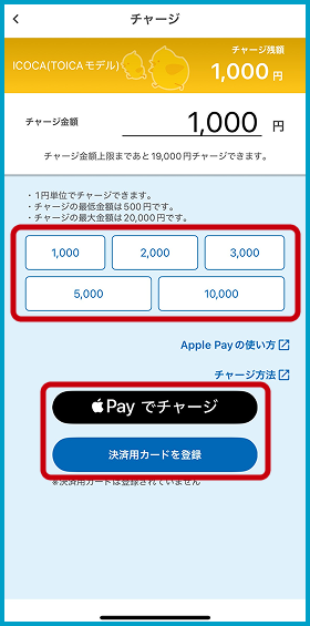 チャージ(入金)金額を選択
