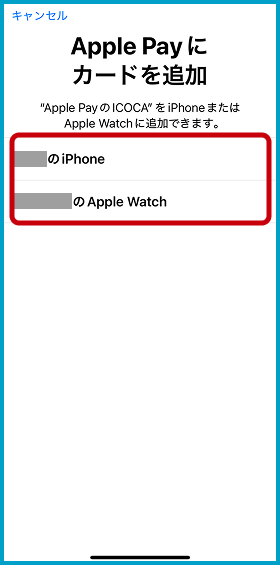 カードを追加したいデバイスを選択